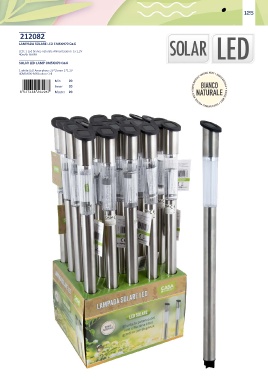 125 212082 LAMPADA SOLARE LED CM5XH70 C&G LED: 1 Led bianco naturale Alimentazione: 1x 1,2V 40mAh Ni-MH SOLAR LED LAMP CM5XH70 C&G 1 white LED Amorphous 25*25mm 1*1.2V 40MAH Ni-MH button Cell 8AMHOPI*caejgh+ Min 20 20 Inner Master 20