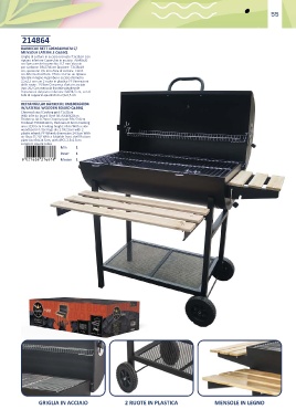 GRIGLIA IN ACCIAIO 2 RUOTE IN PLASTICA MENSOLE IN LEGNO