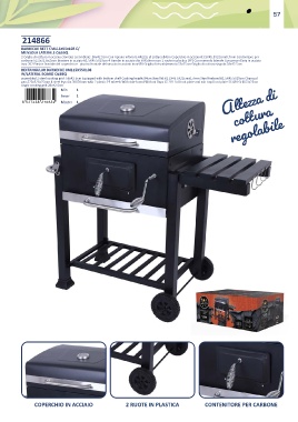 carbone:52,3x32,6x25cm Braciere in acciaio:61.5X45.5X29cm 4 Gambe in acciaio dia 50X50mm con 2 ruote in plastica (PP) Con mensola laterale Con prese d’aria in acciaio