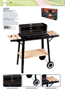GRIGLIA IN ACCIAIO 2 RUOTE IN PLASTICA MENSOLE IN LEGNO