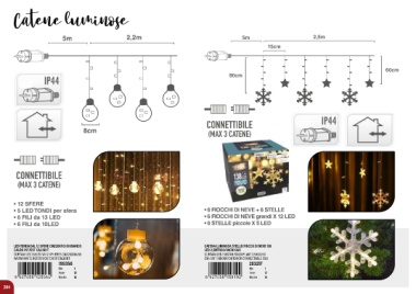 LED TENDA138L 12 SFERE CM220X110/80 BIANCO CATENA LUMINOSA STELLE/FIOCCO DI NEVE 138