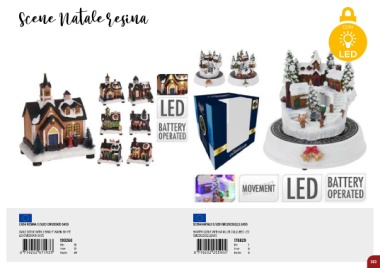 CASA RESINA C/3LED CM12X9X15 6ASS SCENA NATALE C/LED CM22X22X22,5 2ASS