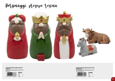 DECORAZIONE NATALE RESINA RE MAGI 3PZ DECORAZIONE NATALE RESINA ASINO E BUE 2PZ