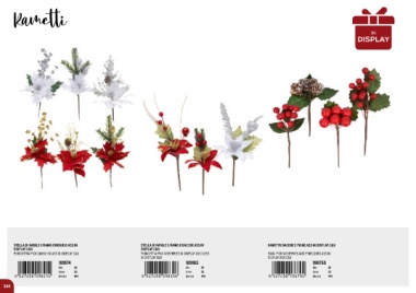 POINSETTIA PICK CM15XH30 ASS IN DISPLAY C&X POINSETTIA PICK W/BERRIES IN DISPLAY ASS SIZES SMAL PICK W/BERRIES AND PINECONES ASS IN
